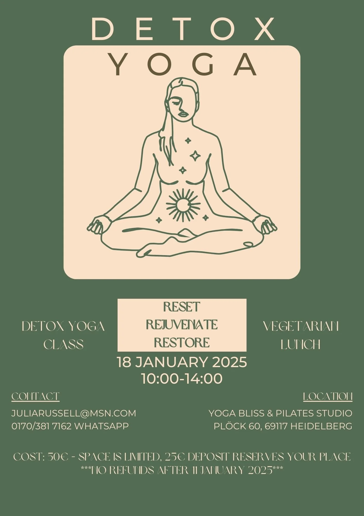 Kickstart 2025 with clarity, connection, and movement at our Detox Yoga Mini-Retreat! Join us on Saturday, January 18, 2025, from 10 AM to 2 PM at Yoga Bliss and Pilates Studio for an experience designed to refresh your body and mind.